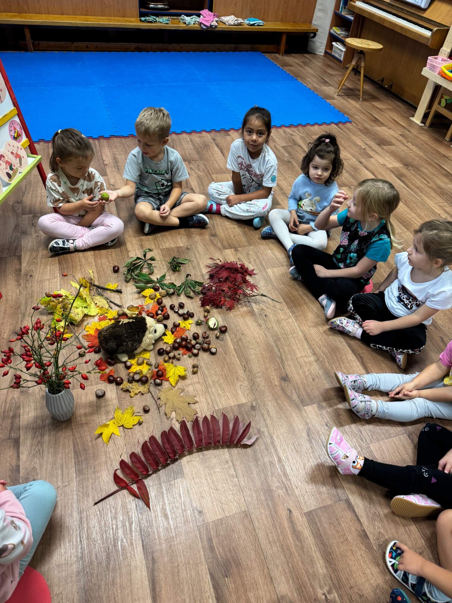 Během týdne k nám zavítal i ježek – plyšový, ale s opravdovým kouzlem. Děti mu společně vybraly jméno Lísteček a hned se stal jejich novým kamarádem. Lísteček je provázel při hrách, pomáhal hlídat kaštany a večer se vždy schoulil do svého pelíšku z listí.